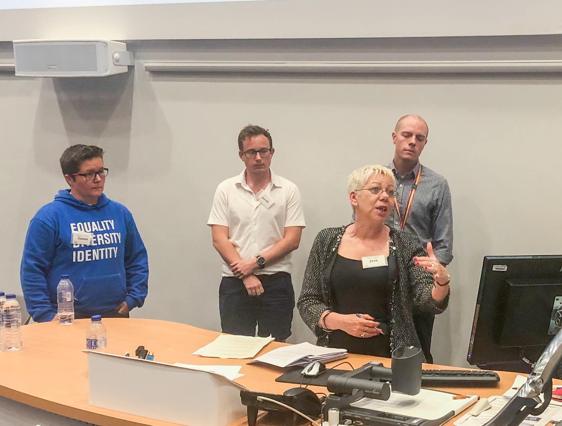 Susan Hailes (Metro Charity), Jacob Bayliss (Pride in Practice), Dr David Hambrook (SLAM), Jess Leech (Southwark Council community engagement), Rosie Dalton-Lucas (Southwark Council Place & Wellbeing)